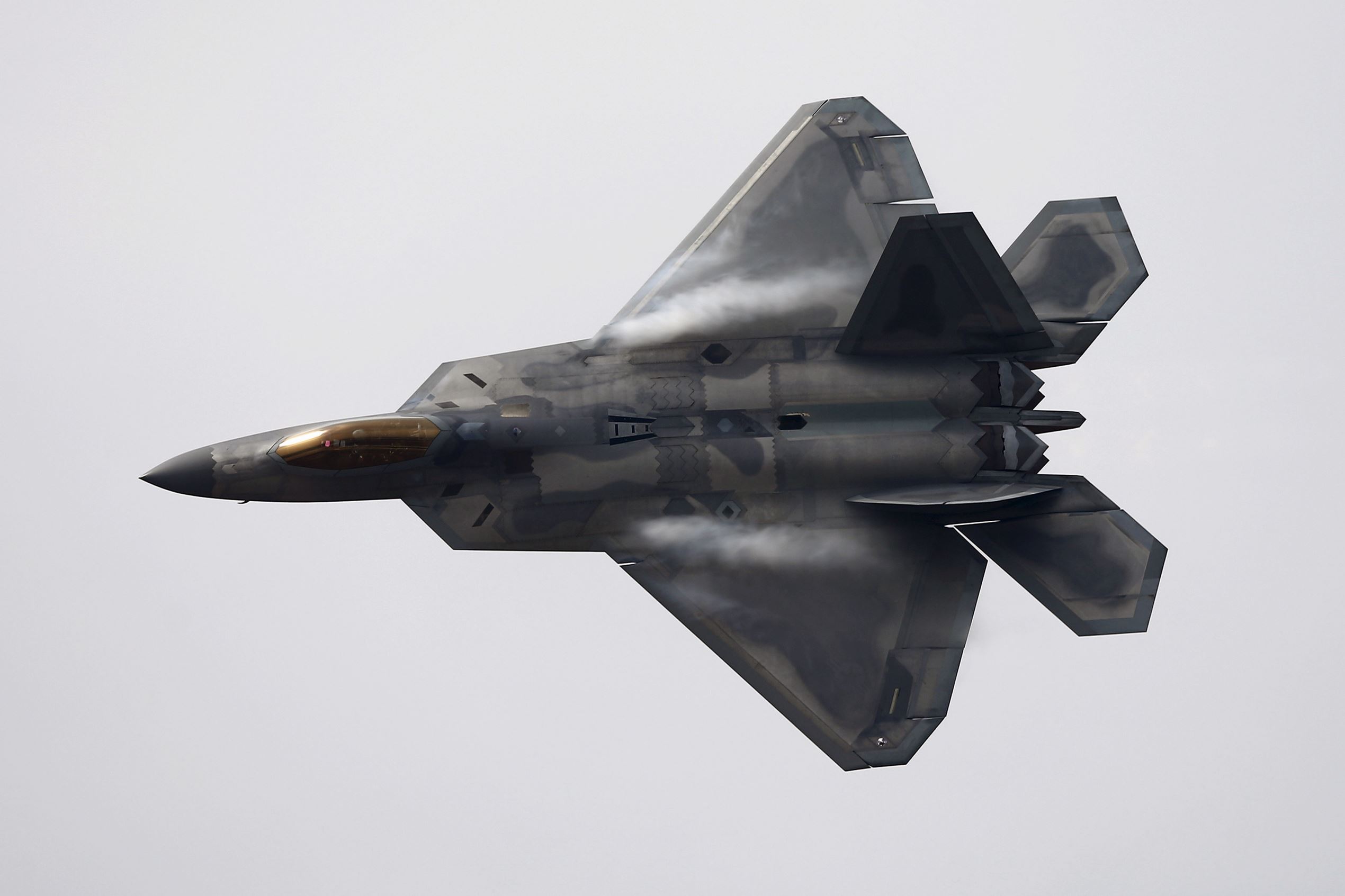 | © REUTERS/Ivan Alvarado A U.S. Flying corps F-22 Raptor contender plane performs in front of the International Air and Space Fair (FIDAE) at Santiago global airplane terminal, March 28, 2016. |
